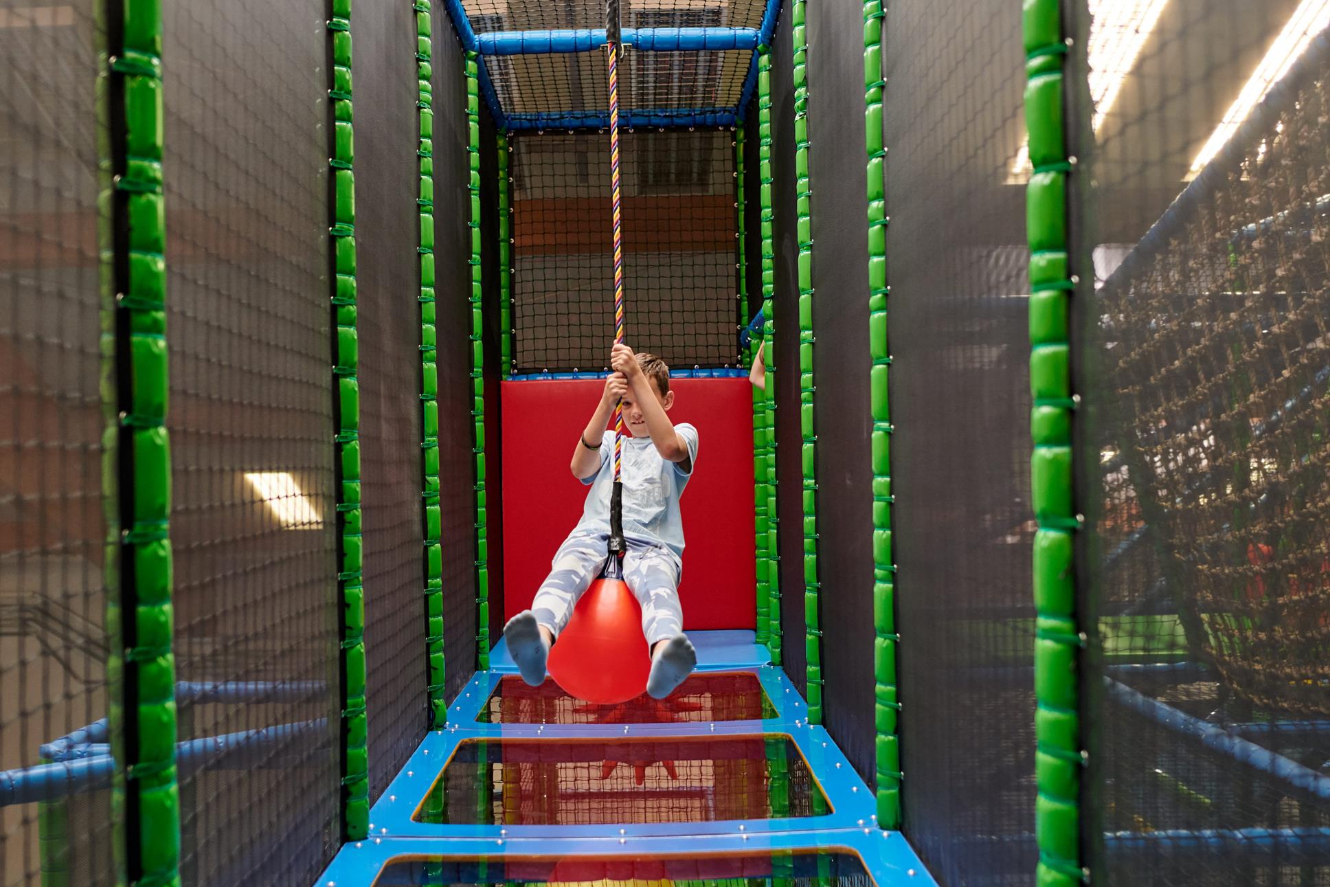 W świecie ancymondo ukryliśmy mini park linowy, który wymaga od dzieci chwili skupienia i dobrej koordynacji, a którego przejście daje ogromną satysfakcję. Konstrukcje na linach są zawieszone tuż nad siatką wysłaniającą ancymondo, dlatego nie wymagają dodatkowych zabezpieczeń w postaci uprzęży i są całkowicie bezpieczne.
